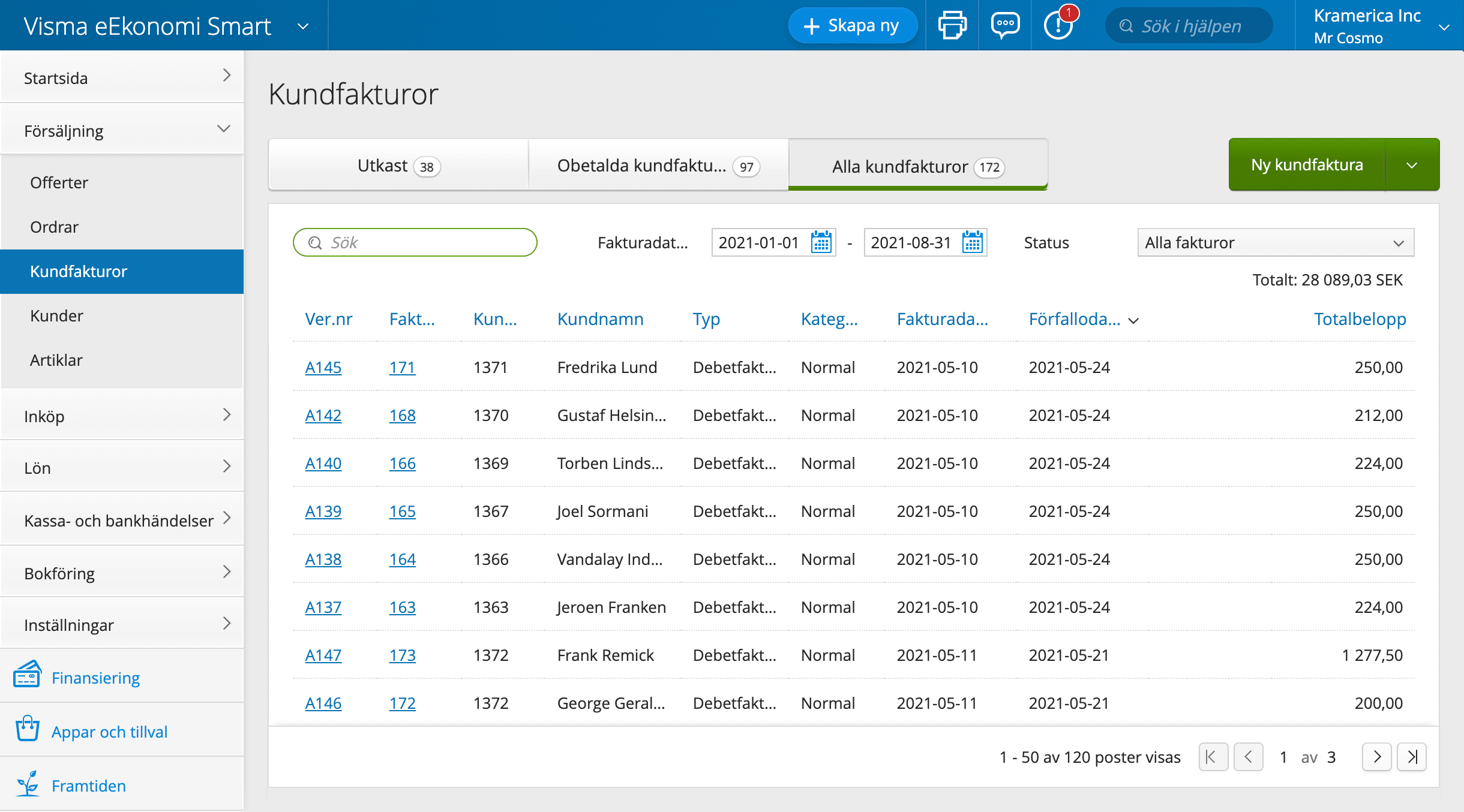 Automatiskt avstämning mellan Klarna och Visma eEkonomi.